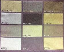 左図は、A:ネズブルー、B:紫、C:黄の3色×2組織パターンの色見本です。